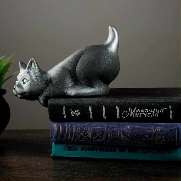 Фигура "Кот Нырок" чёрный/серебро 11х9х18см