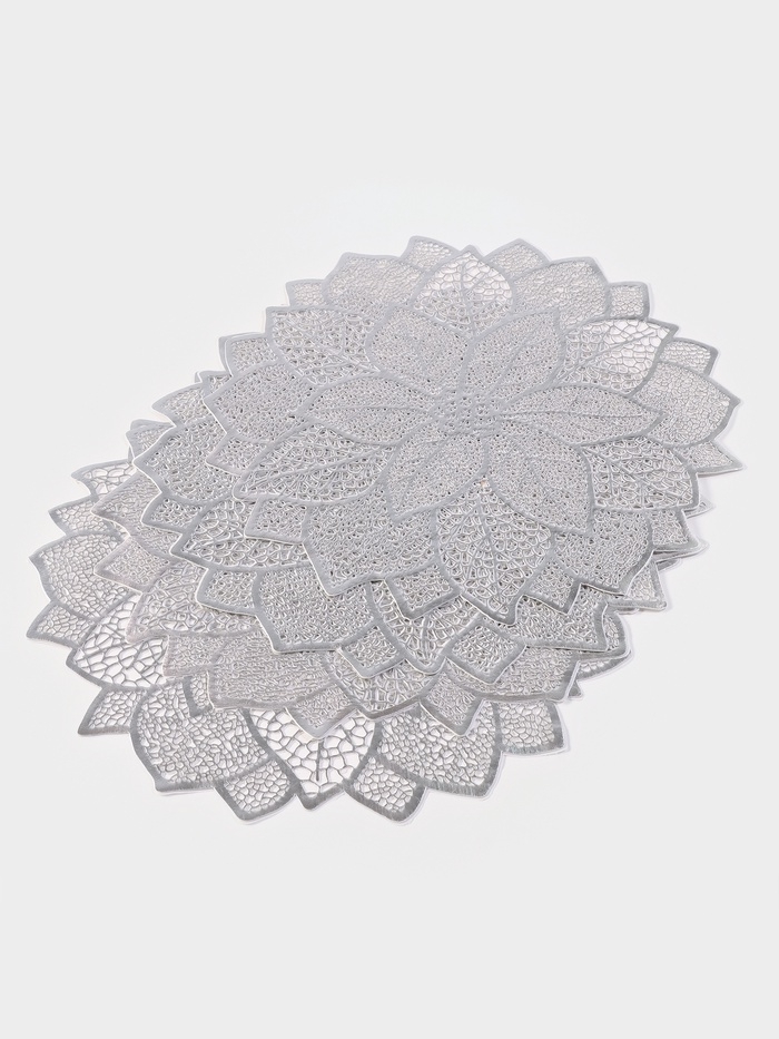 Салфетка сервировочная на стол «Цветок», d=43 см, цвет серебряный