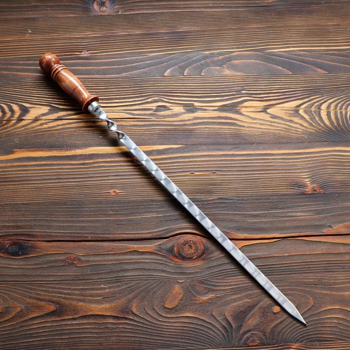 Шампур узбекский с деревянной ручкой, рабочая длина - 40 см, ширина - 14 мм, толщина - 3 мм