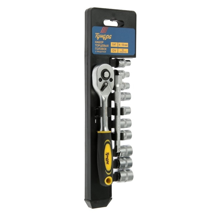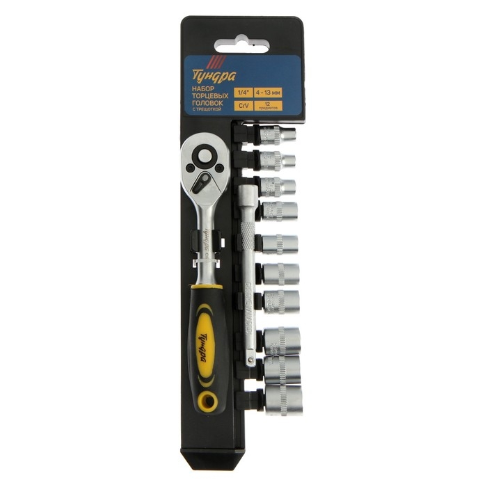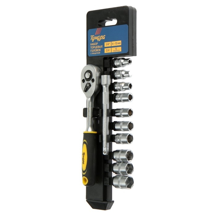 Набор торцевых головок ТУНДРА, трещотка, CrV, 1/4", 4 - 13 мм, 12 предметов