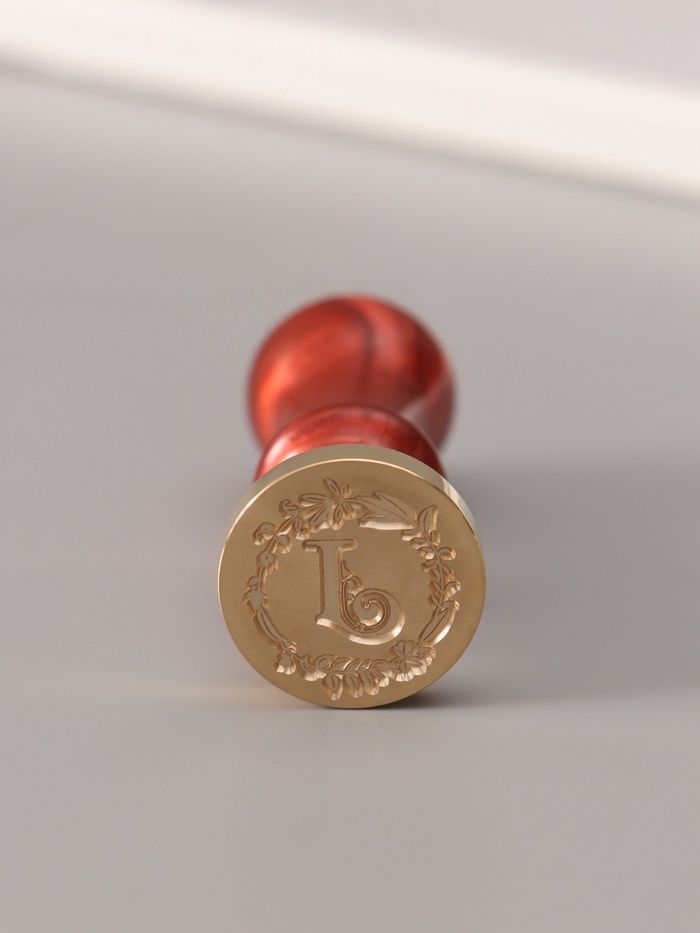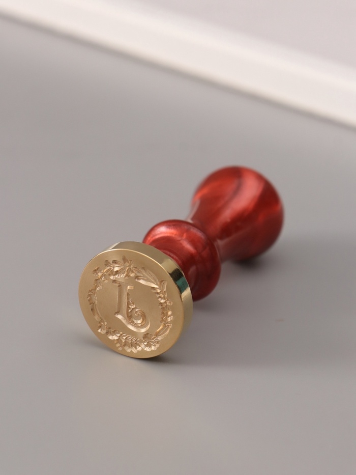 Печать для сургуча с пластиковой ручкой "Венок с буквой J" 2,5х2,5х6,3 см