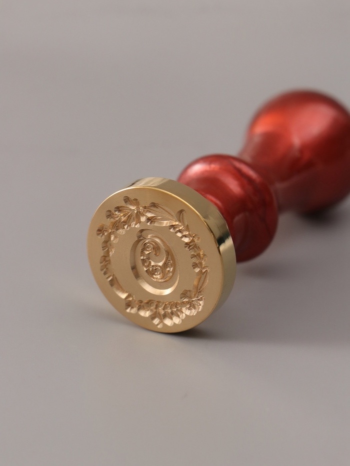Печать для сургуча с пластиковой ручкой "Венок с буквой O" 2,5х2,5х6,3 см
