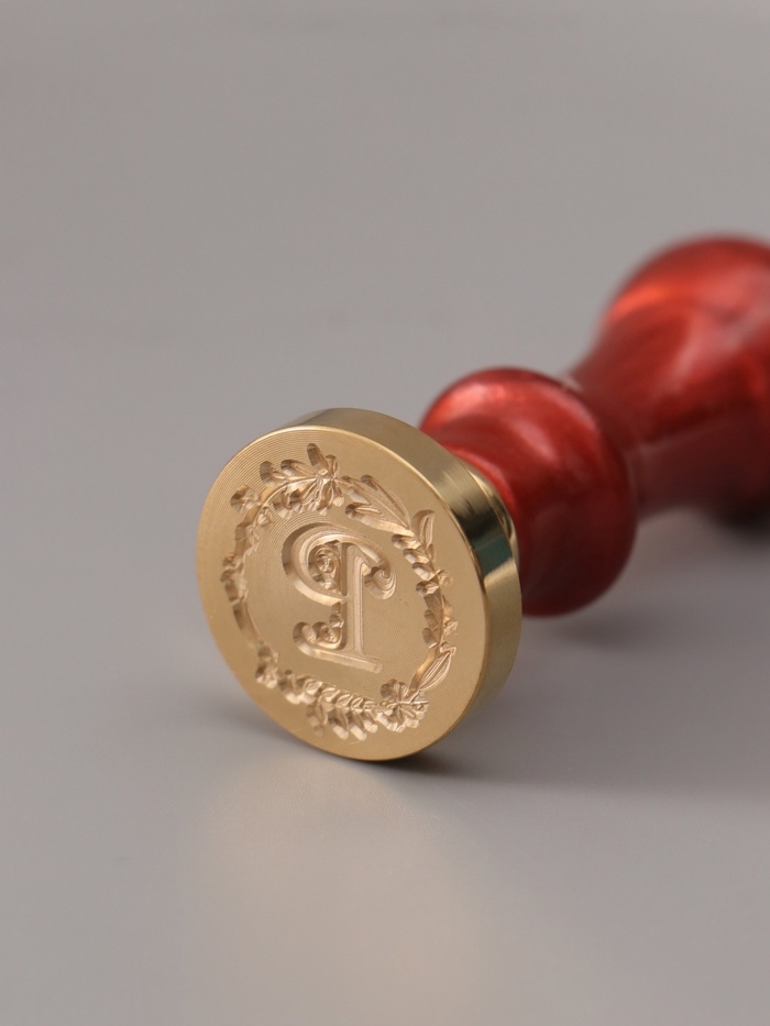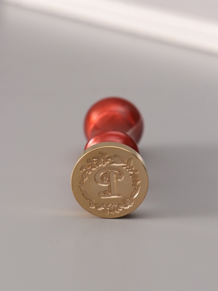 Печать для сургуча с пластиковой ручкой "Венок с буквой P" 2,5х2,5х6,3 см