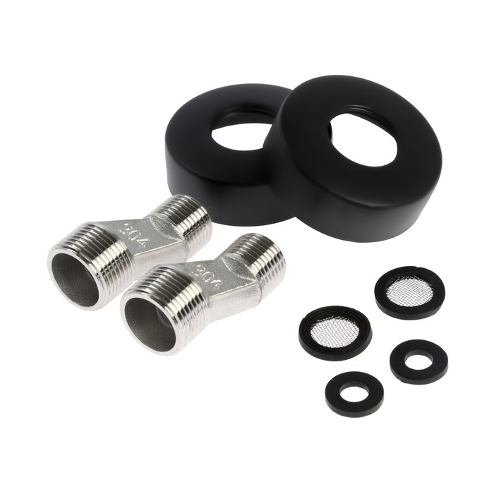 В комплект входят эксцентрики для быстрого и простого монтажа сантехнического прибора и отражатели — чашеобразные накладки, которыми закрывают места крепления, придавая конструкции эстетичный вид.