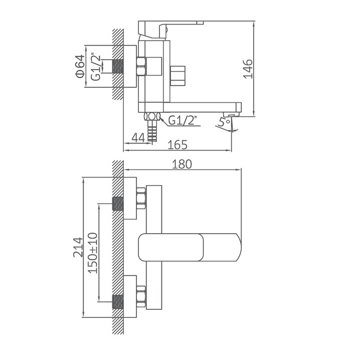 Смеситель для ванны ZEIN Z0155, кран-букса 1/2", душевая лейка и шланг, хром