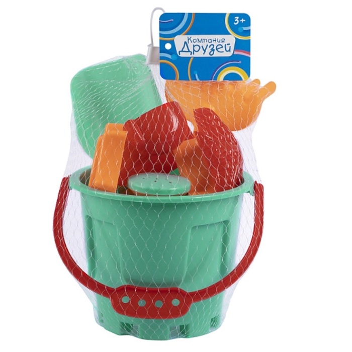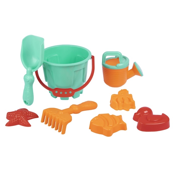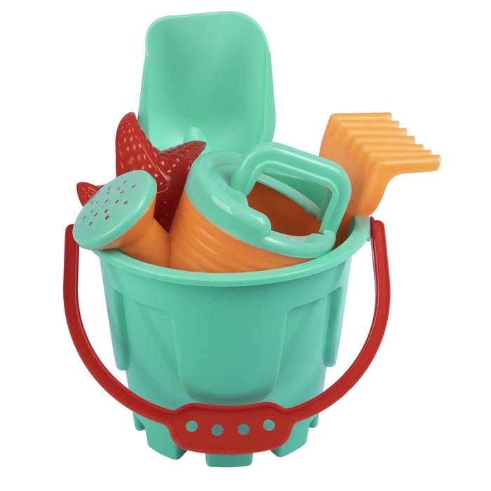 Песочный набор бирюзовый.(ведро 1,2 л,лопатка,грабли,4 формочки, лейка 0,2 л) JB5600267