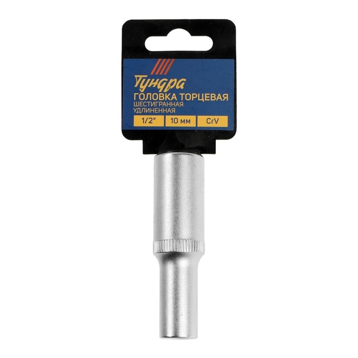 Головка торцевая шестигранная удлиненная ТУНДРА, под квадрат 1/2", 10 мм, CrV