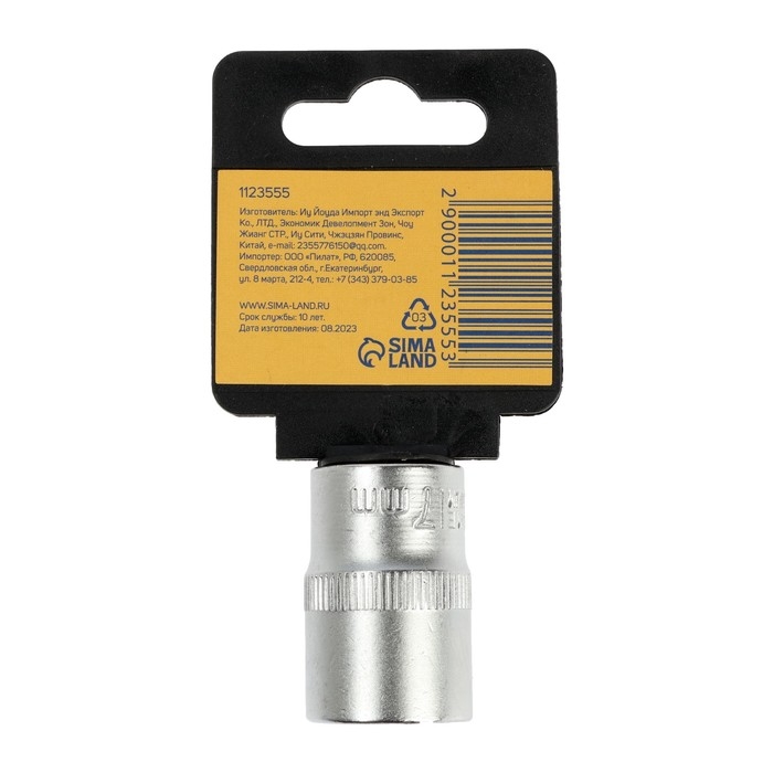 Головка торцевая шестигранная ТУНДРА, под квадрат 1/2", 10 мм, CrV