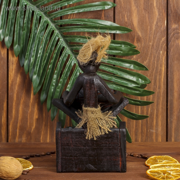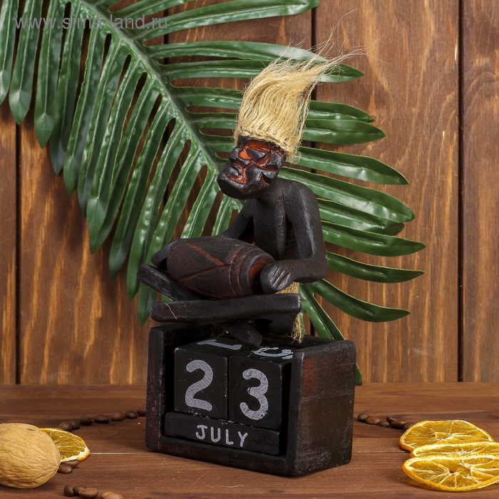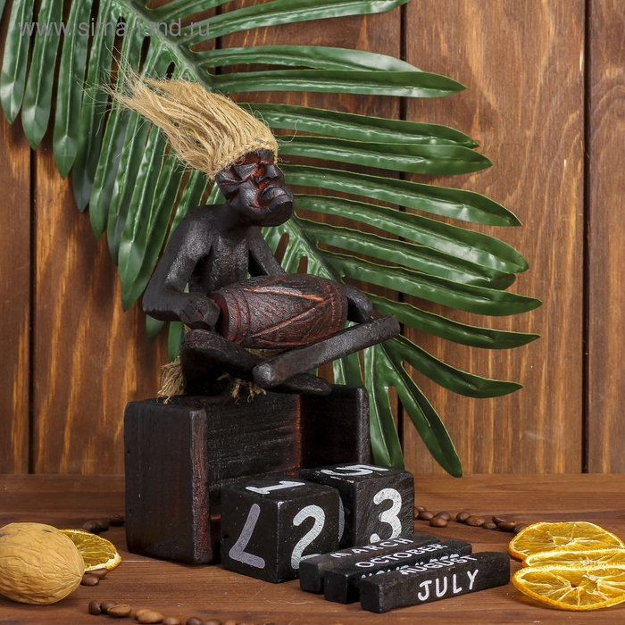 Сувенир дерево календарь "Абориген сидит с барабаном" 19х11х5,5 см