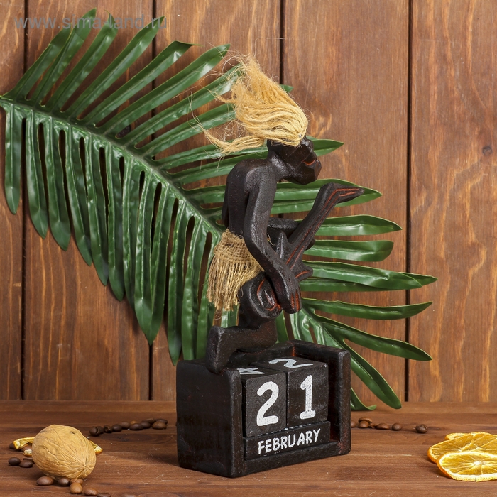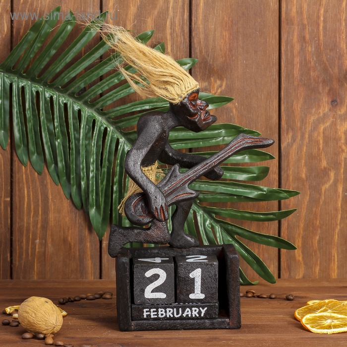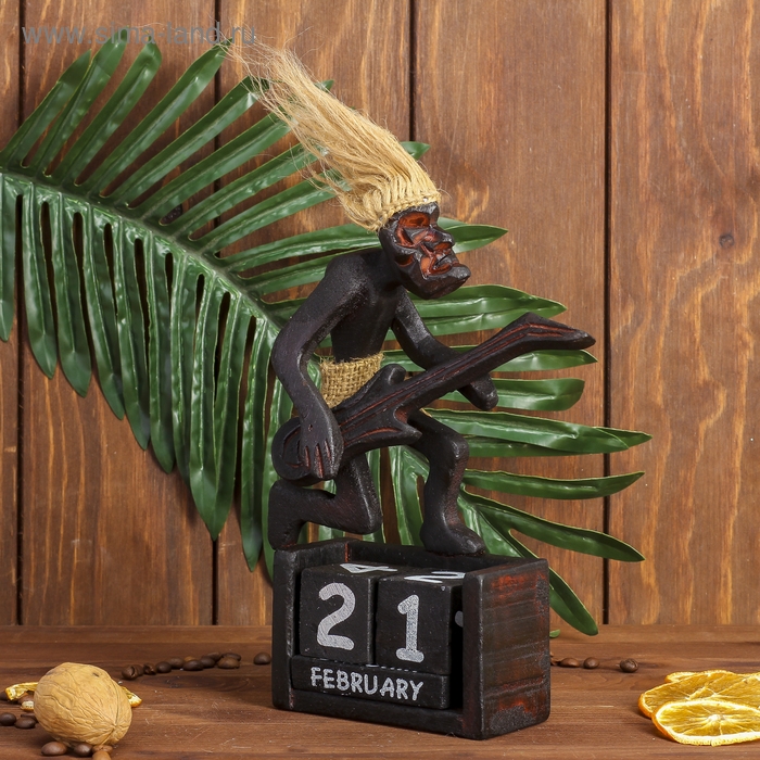 Сувенир дерево календарь "Абориген с гитарой" 23х16х7 см