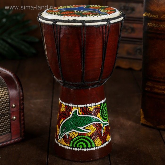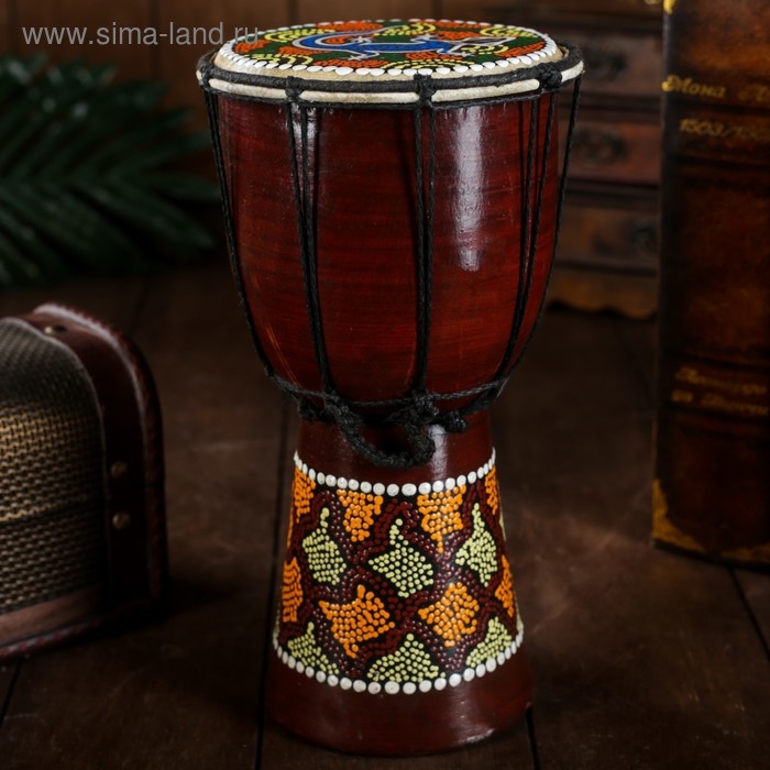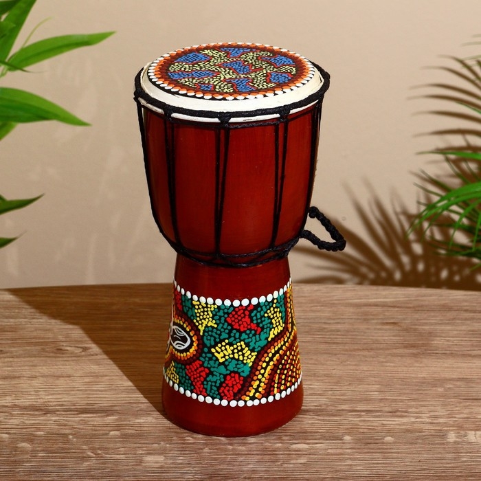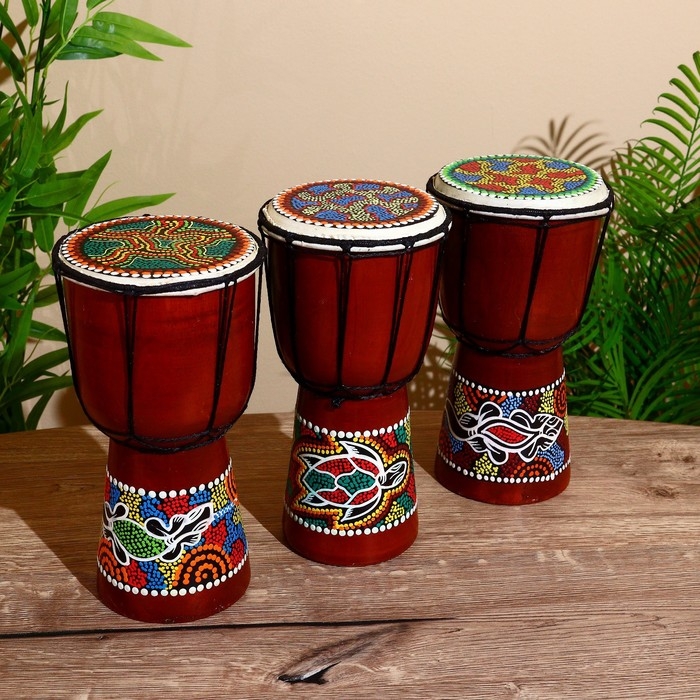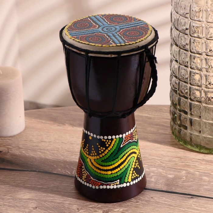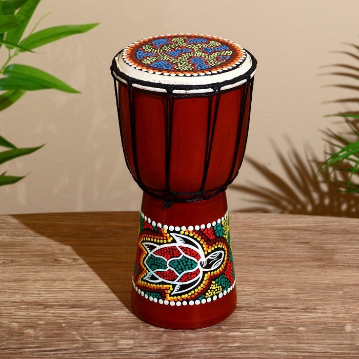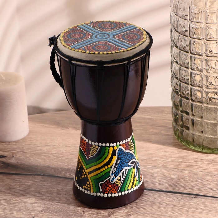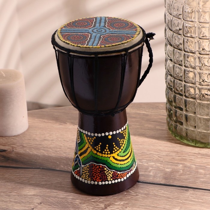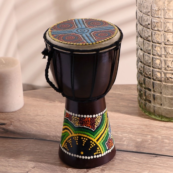 Сувенирный музыкальный инструмент "Барабан Джембе Разноцветный" 13x13x24 см, МИКС