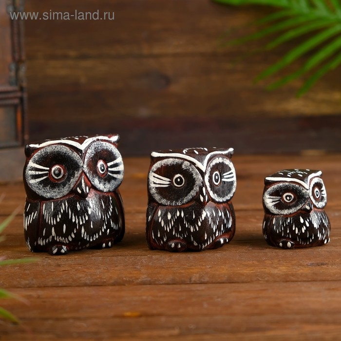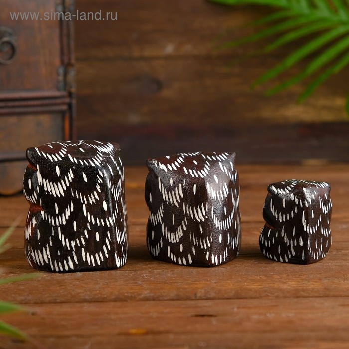Сувенирный набор дерево "Совы с перьями"*(3 шт) 6х19х8 см