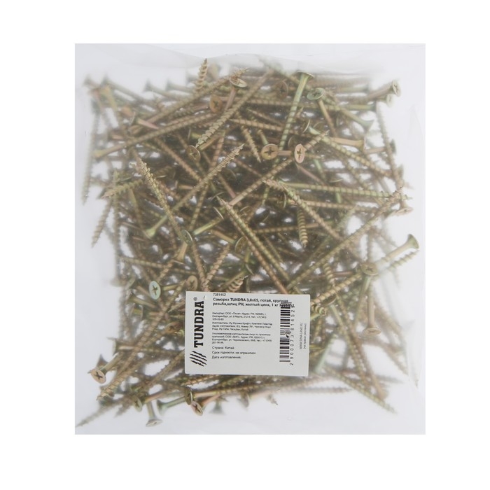 Саморез 3.8х65 мм ТУНДРА PREMIUM, потай, крупная резьба, шлиц PH, желтый цинк, 1 кг