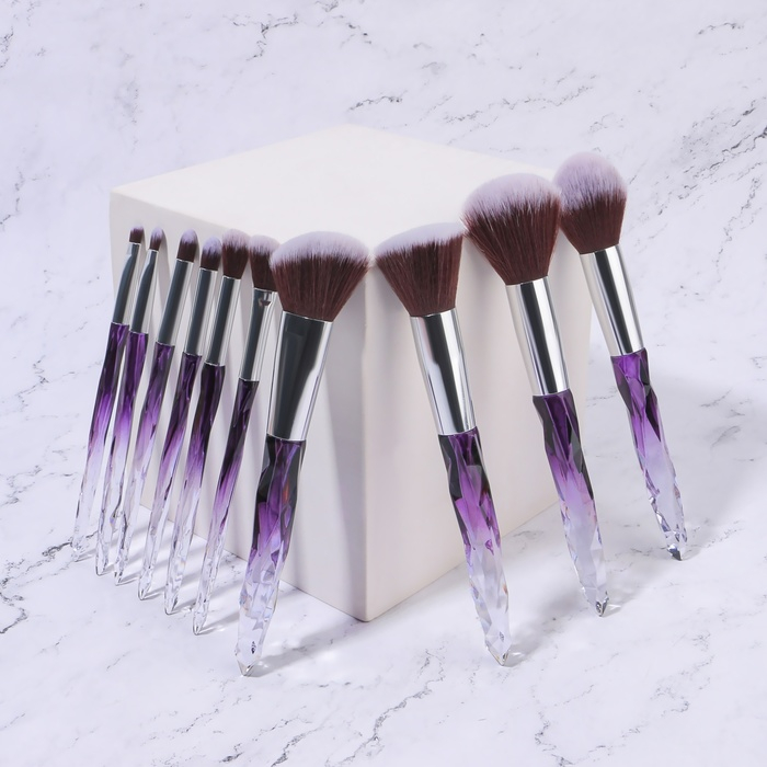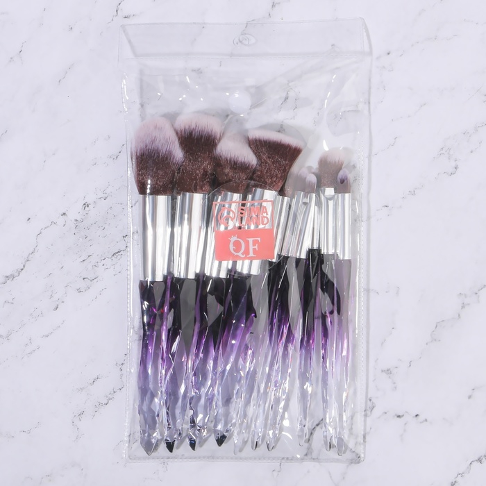 Набор кистей для макияжа «Luminous», 10 предметов, PVC - чехол, цвет чёрный/фиолетовый