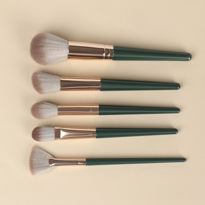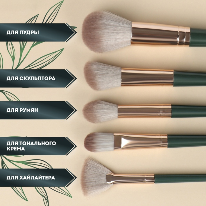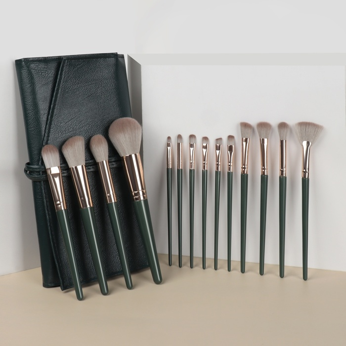 Набор кистей для макияжа «Lillian», 14 предметов, футляр на завязках, цвет зелёный/серый