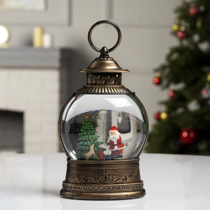 Светодиодная фигура «Дед Мороз у ёлки» 12.5 × 20 × 7.5 см, пластик, батарейки АААх3 (не в комплекте), USB, свечение тёплое белое