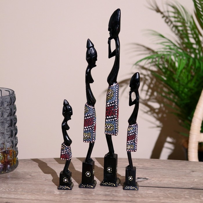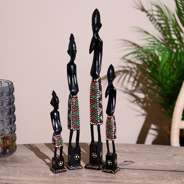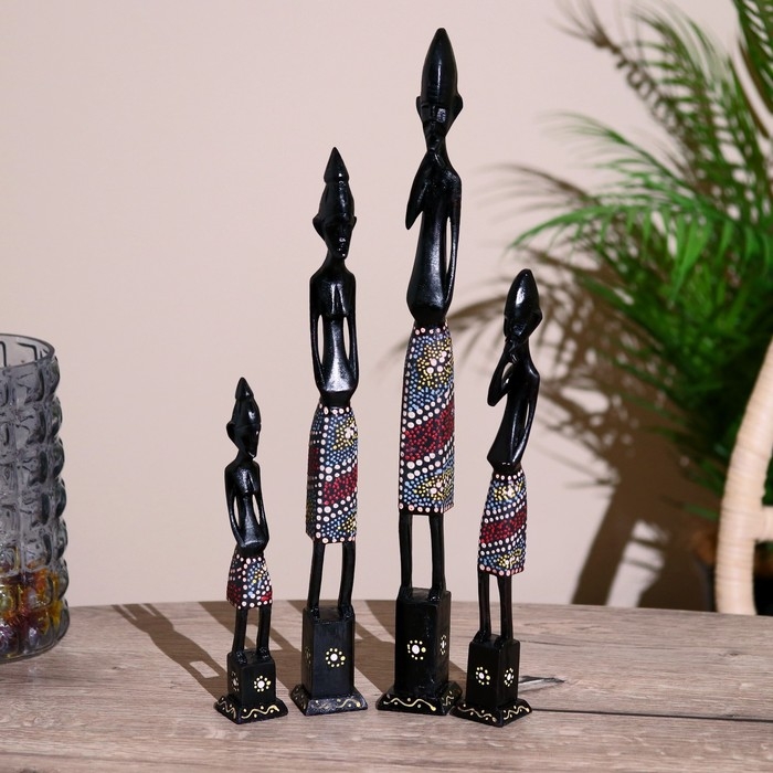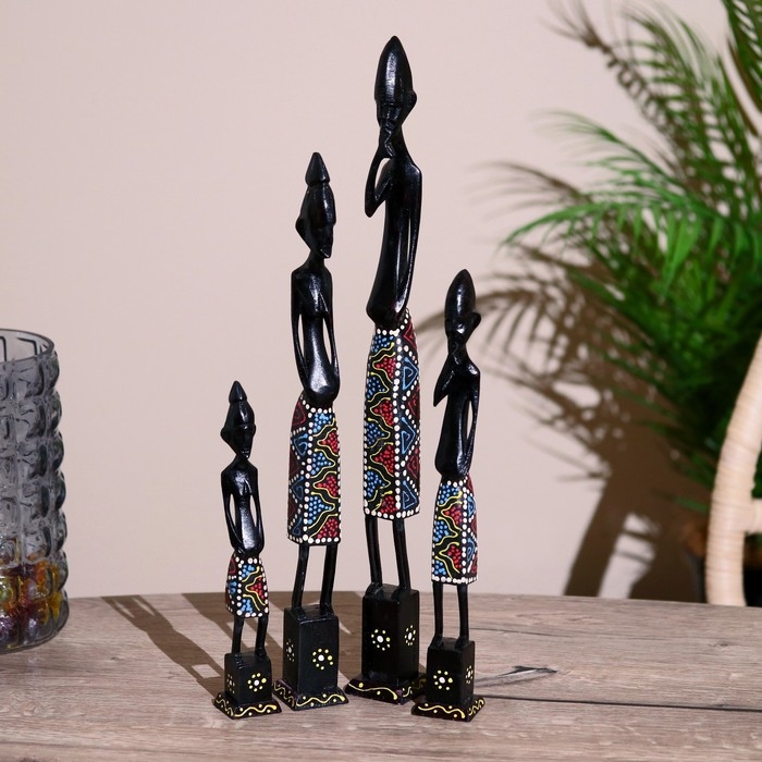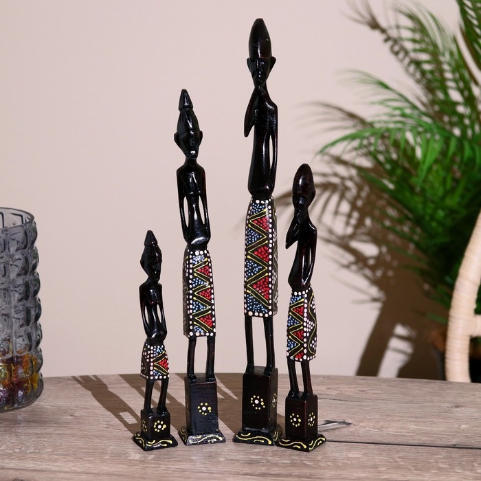 Статуэтки "Семья аборигенов" дерево (набор 4 штуки) 40,30,25,20 см МИКС
