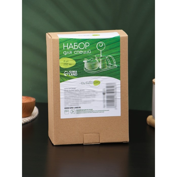 Набор для специй BellaTenero изготовлен из качественного фарфора. Кухонные изделия из фарфора отличаются прочностью и надёжностью, устойчивы к появлению царапин и резким перепадам температур. Благодаря оригинальному дизайну набор отлично впишется в интерьер вашей кухни и станет настоящей изюминкой при сервировке.