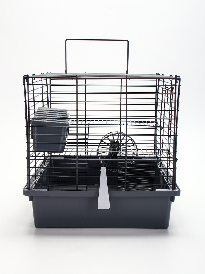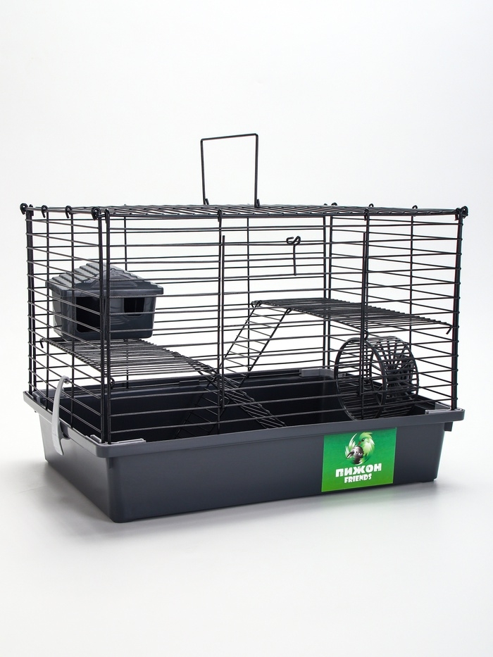 Клетка для грызунов "Пижон" складная, 38 х 27 х 27 (домик, миска, колесо) серая