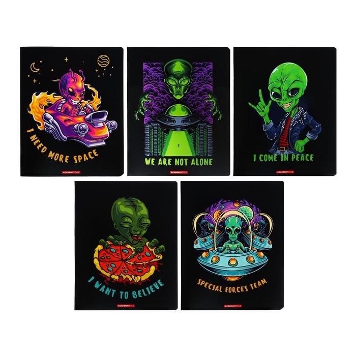 Тетрадь 48 листов в клетку "Гуманоид", обложка мелованный картон, выборочный УФ-лак, конгреф, МИКС