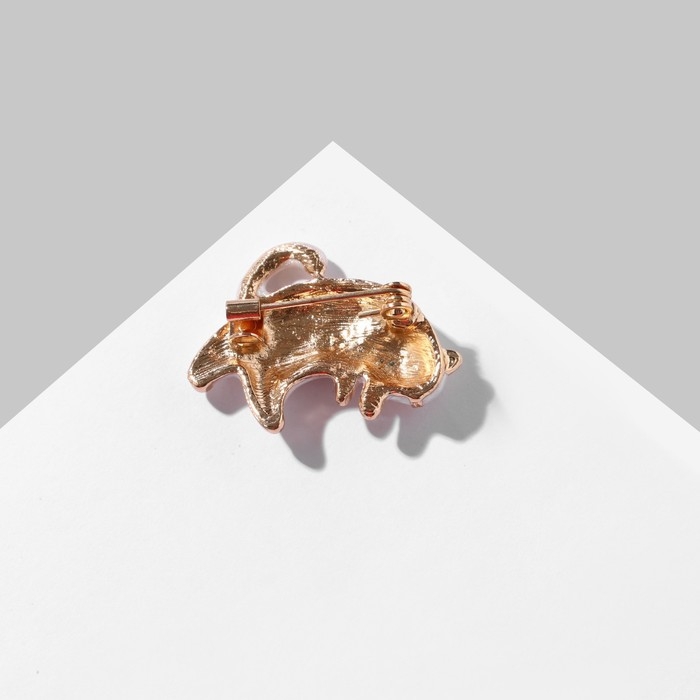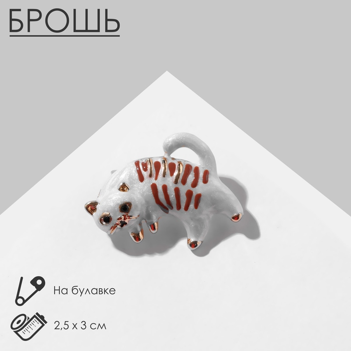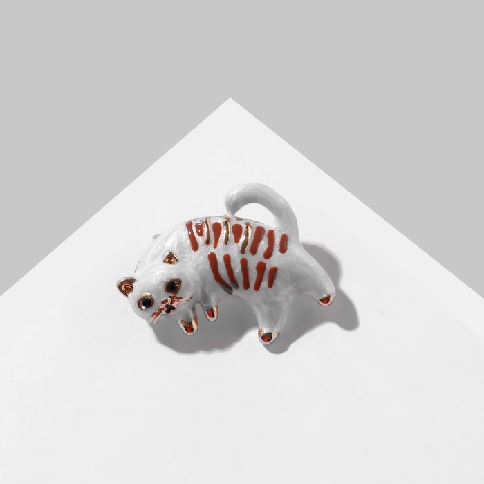 Брошь «Котик» полосатый, цвет бело-коричневый в золоте