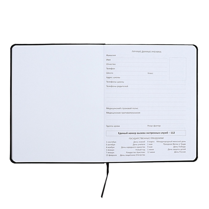 Дневник универсальный для 1-11 класса Black, мягкая обложка, искусственная кожа, термо тиснение, ляссе, 80 г/м2