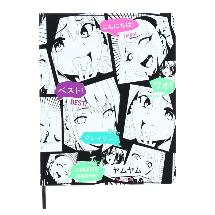 Дневник "deVENTE. Anime Comix" универсальный блок, 48 листов, белая бумага 80 г/м², печать в 1 краску, гибкая обложка из искусственной кожи, шелкография, отстрочка, 1 ляссе