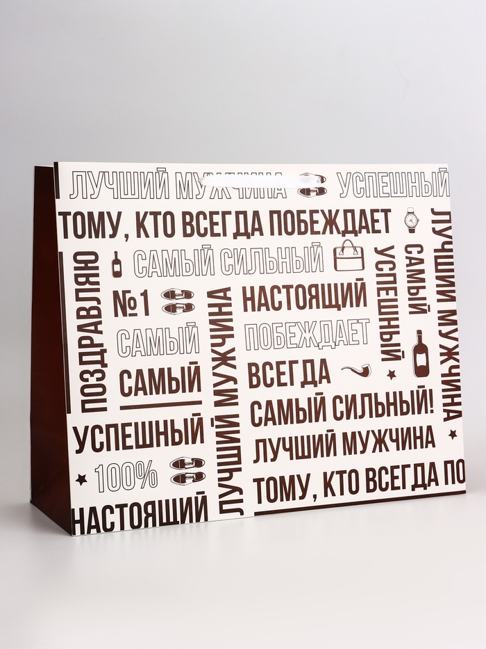 Пакет подарочный горизонтальный "Лучший мужчина", 49 × 40 × 19 см