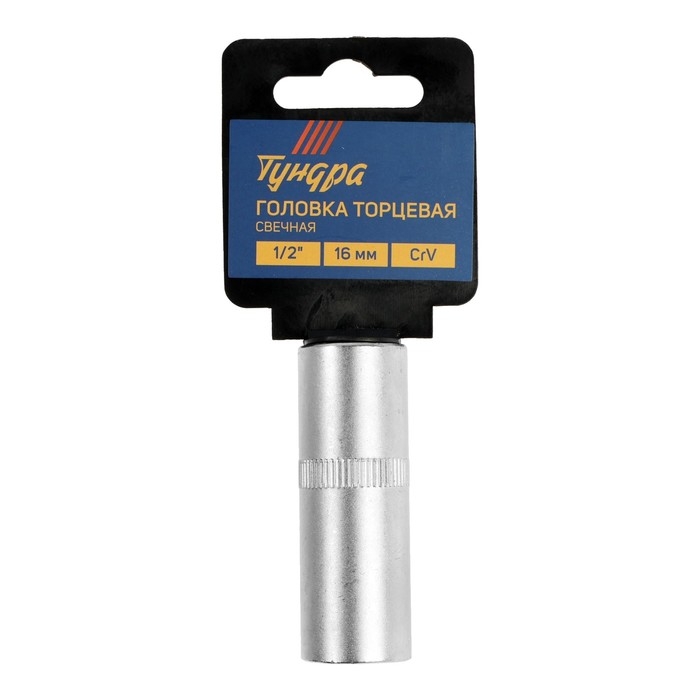 Головка свечная шестигранная ТУНДРА, под квадрат 1/2", 16 мм, CrV