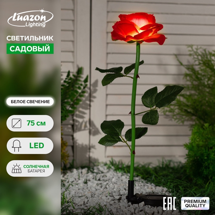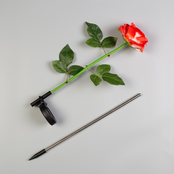 Садовый светильник на солнечной батарее «Роза красная», 75 см, 5 LED, свечение белое