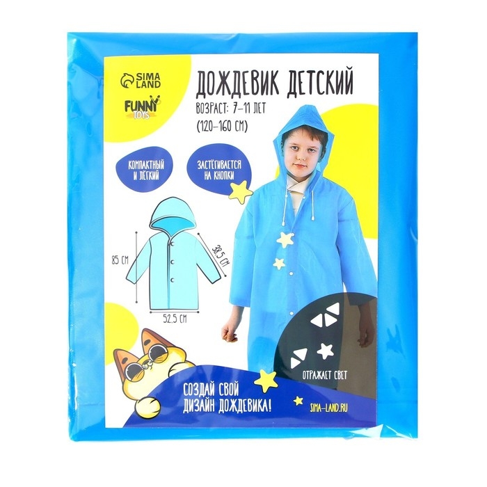 Дождевик детский со светоотражающими элементами, цвет синий (120-160 см)