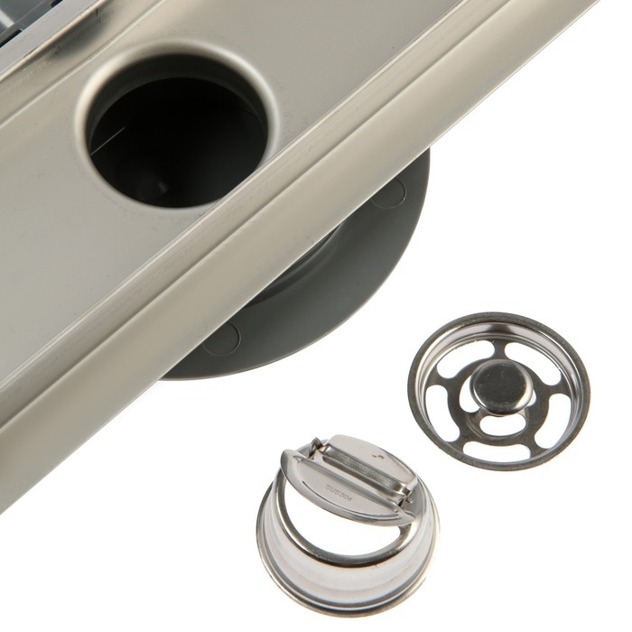 Трап ZEIN engr, c флaнцeм свободного вращ 360°, 7*50 см, d=40/50 мм, нерж сталь, сатин