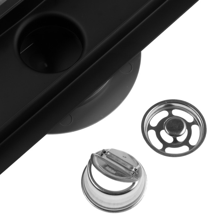 Трап ZEIN engr, c флaнцeм свободного вращ 360°, 7*50 см, d=40/50 мм, нерж сталь, черный