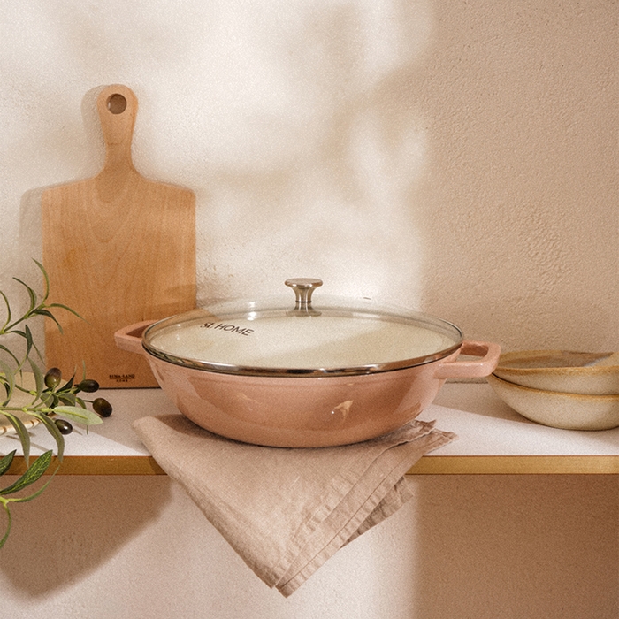 Сковорода-Вок чугунная с эмалированным покрытием SL Home, d=31 см, h=8,5 см, индукция, цвет бежевый