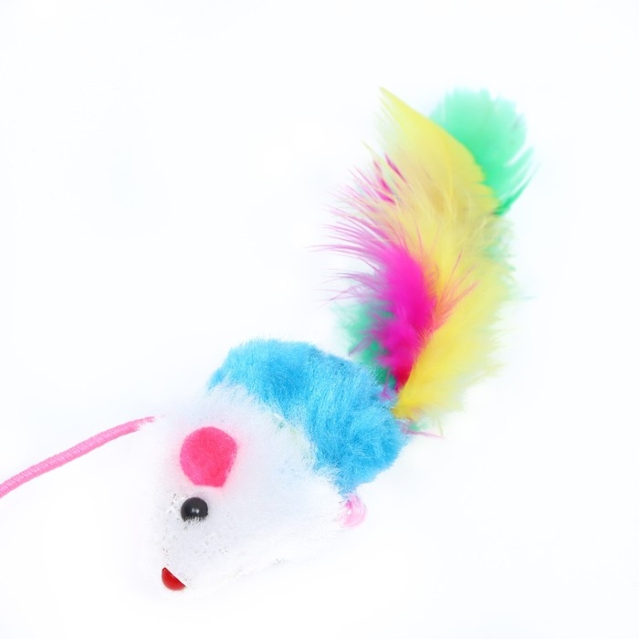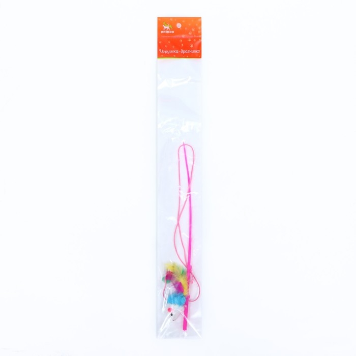 Дразнилка-удочка "Цветная мышка", 32 см, белая/синяя мышь на розовой ручке