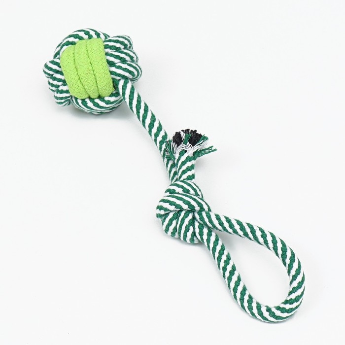 Игрушка канатная плетеная с ручкой, 120 г, до 31 см, синяя/зелёная