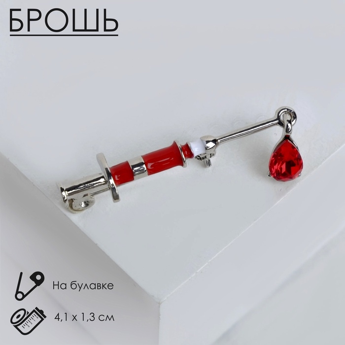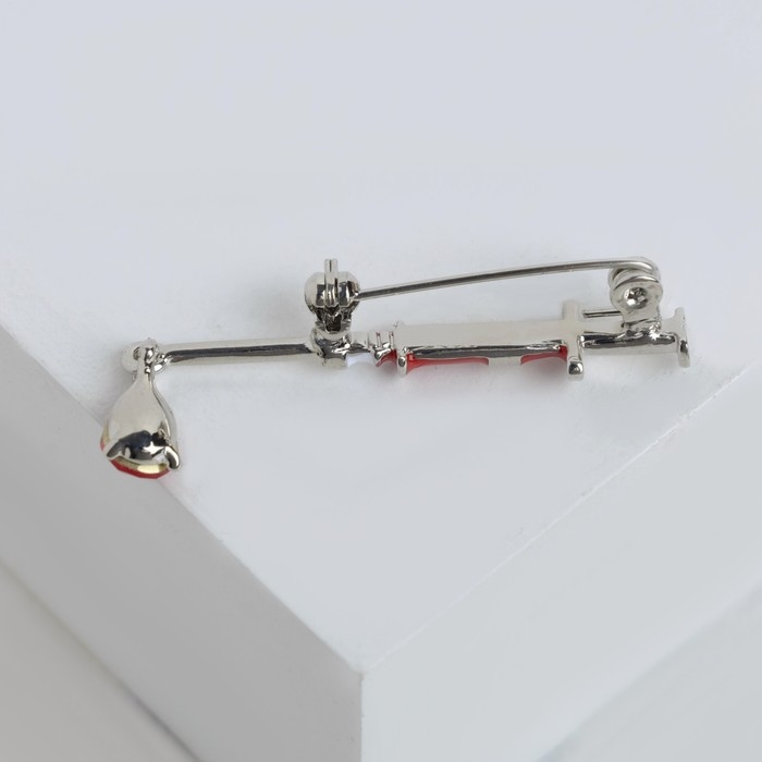 Брошь «Шприц» медицинский, цвет красный в серебре