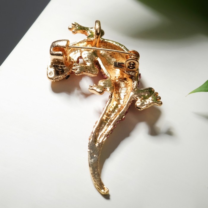Брошь «Ящерица» тропическая, цвет розово-зелёный в золоте