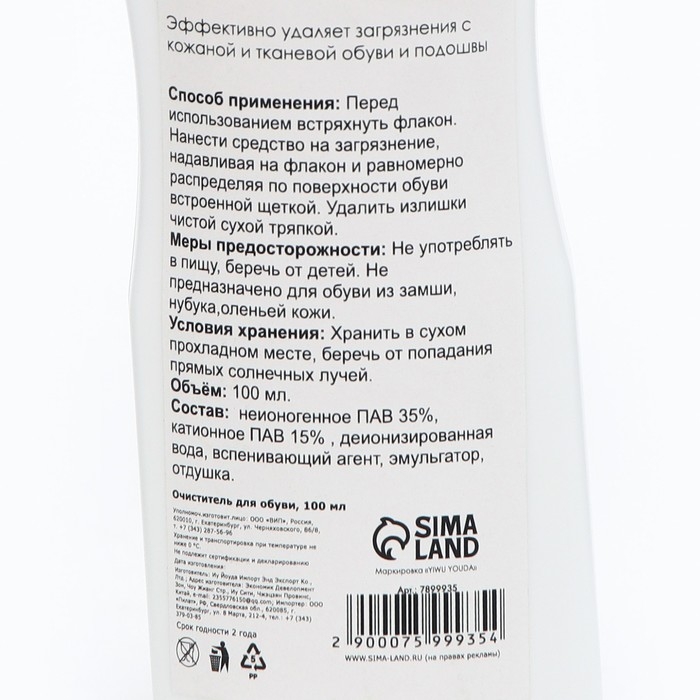 Шампунь для обуви с губкой-аппликатором, 100 мл