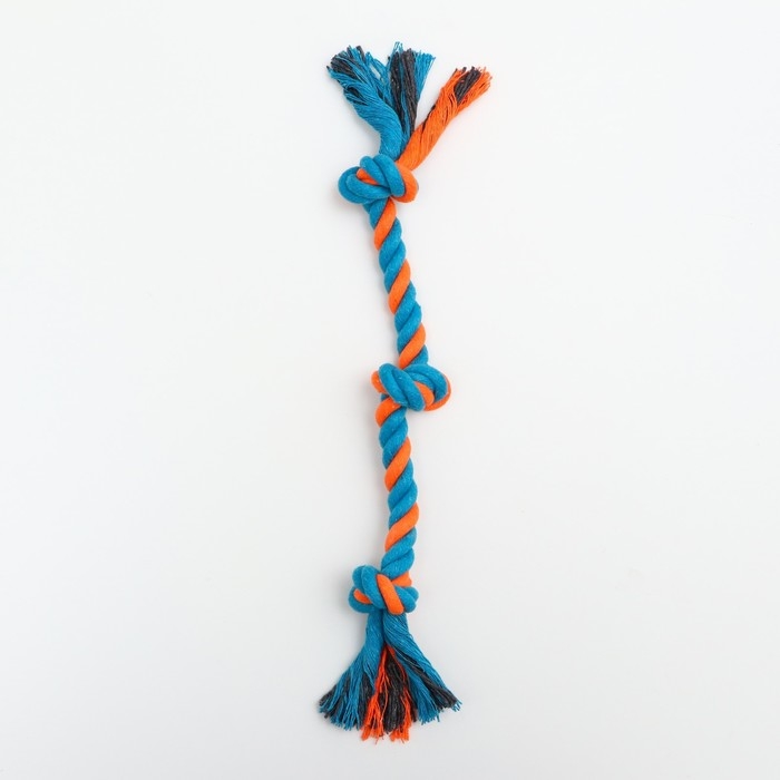 Игрушка тренировочная канатная "3 узла", до 33 см, до 55 г, голубая/оранжевая