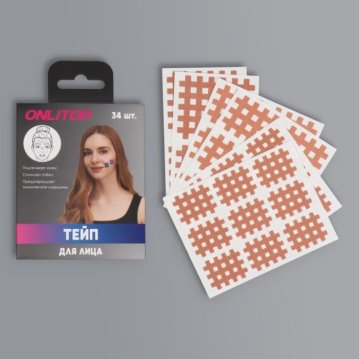 Тейп для лица, набор, 6 листов, цвет бежевый