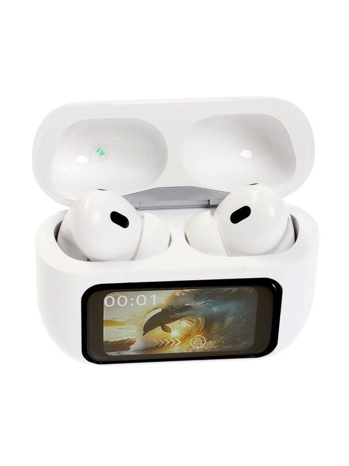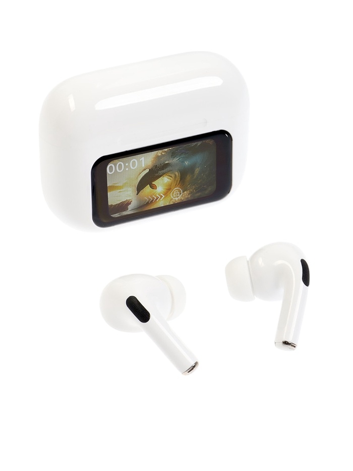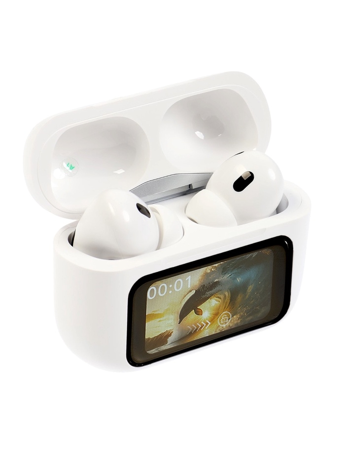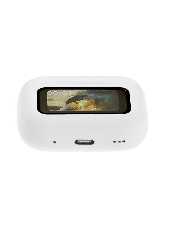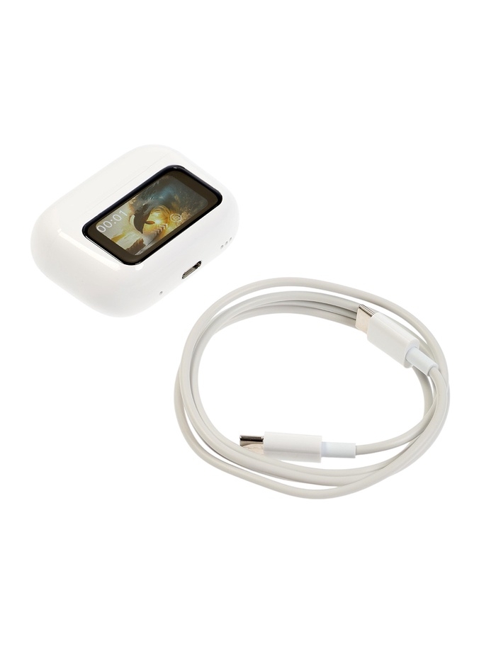 Наушники беспроводные TWS, дисплей, BT5.4, 30/500 мАч, с шумоподавлением, сенсор, белые