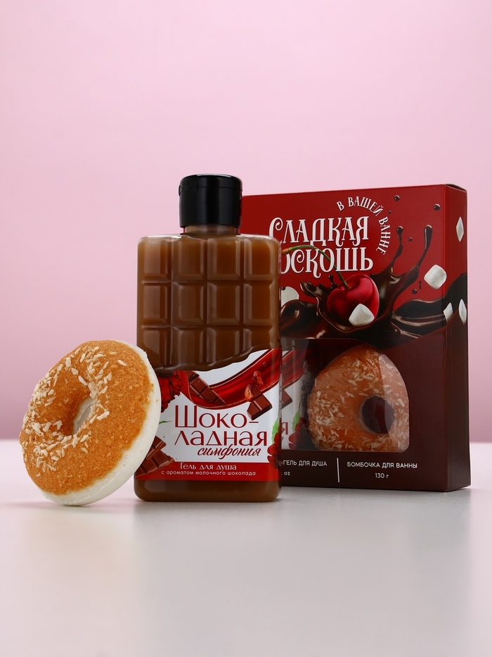 Набор "Сладкая роскошь", гель для душа во флаконе шоколад и поник для ванны
