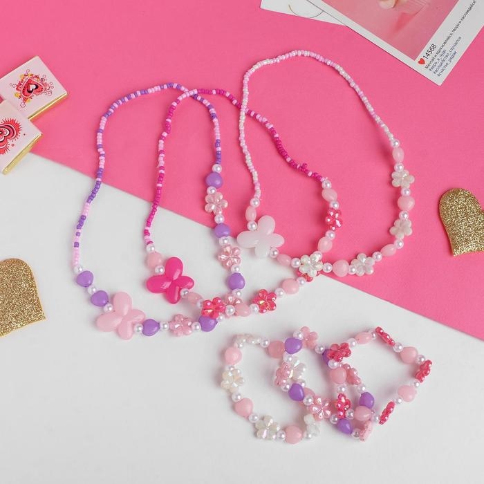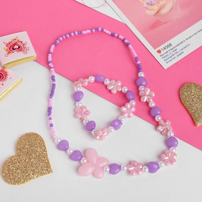 Набор детский «Выбражулька» 2 предмета: бусы, браслет, цветы ромашки с бабочкой, цвет МИКС