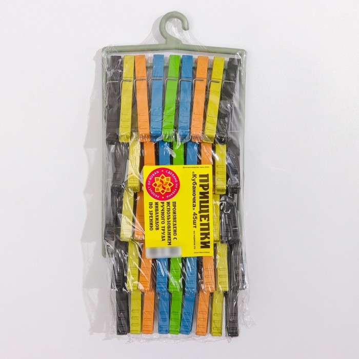 Прищепки бельевые на подвеске «Кубаночка», 8 см, 45 шт, цвет МИКС