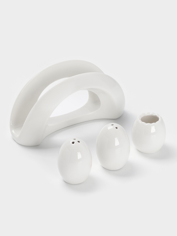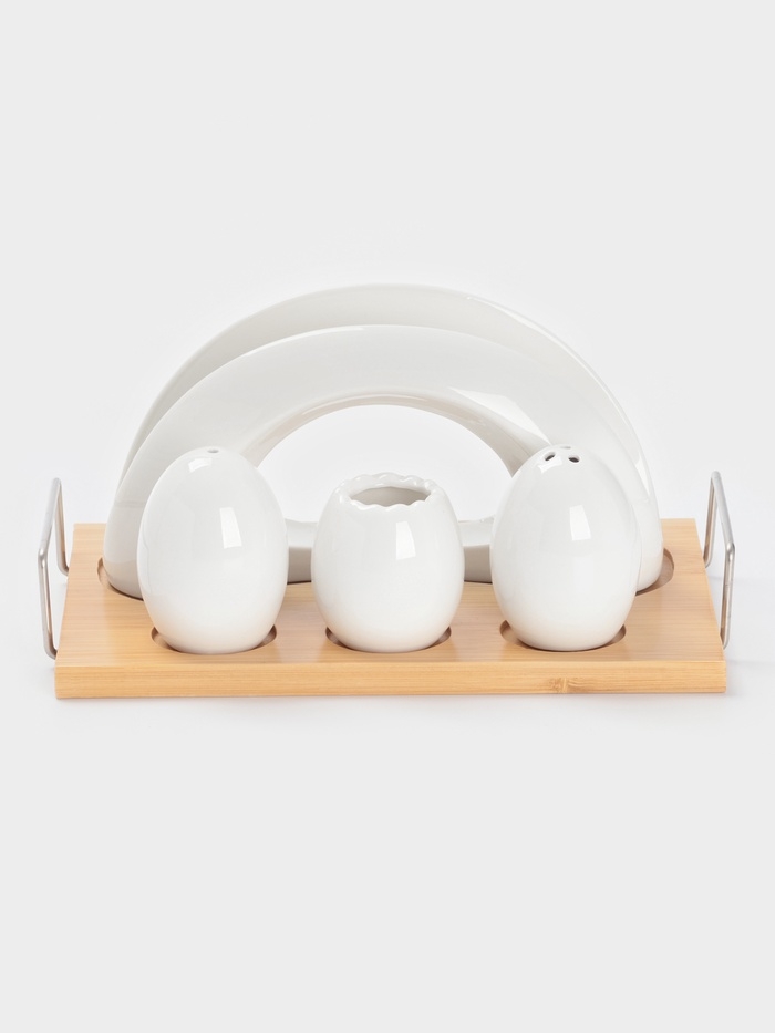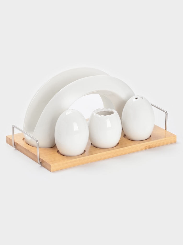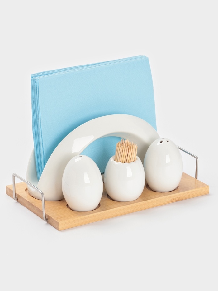 Набор для специй на бамбуковой подст 4 шт, солонка, перечница, салфетница, зубочист