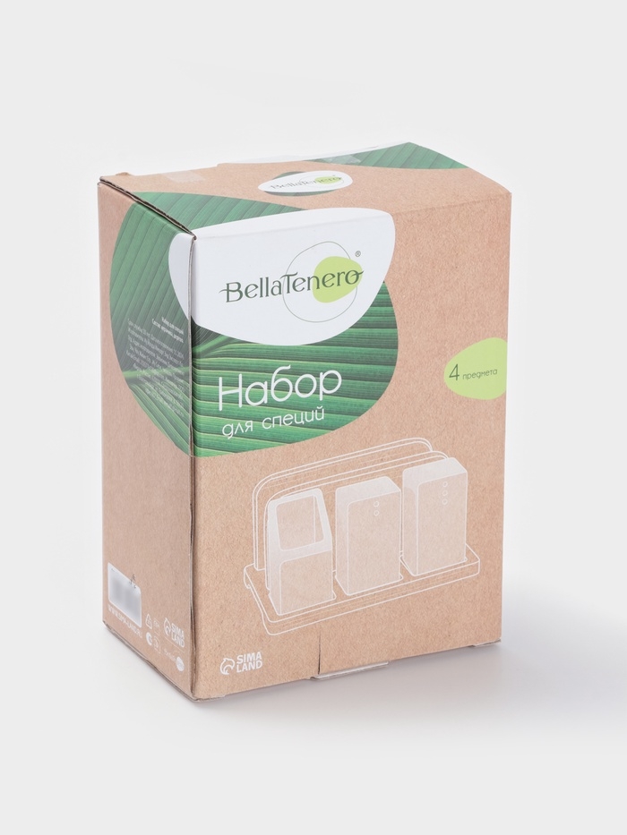 Набор для специй на подст 4 шт "BellaTenero" , солонка, перечница, салфетница, зубочист