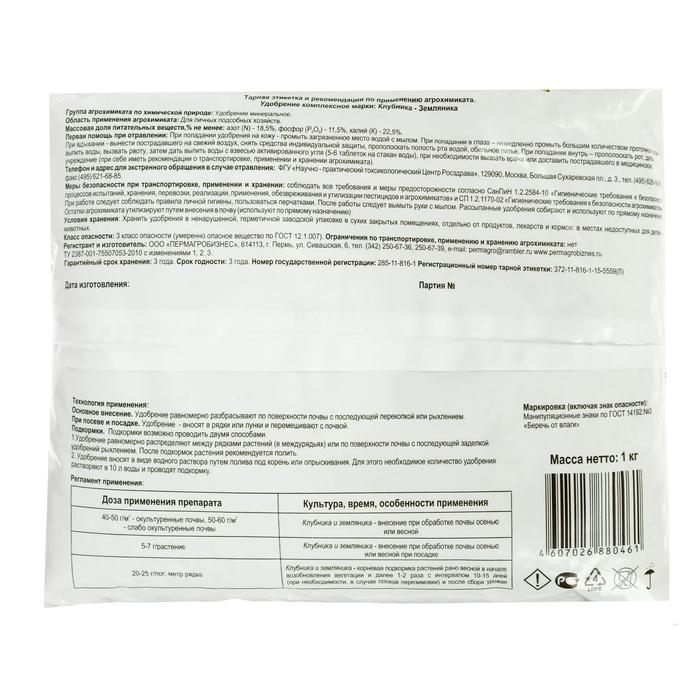 Удобрение минеральное "Пермагробизнес", Клубника - Земляника, 1 кг