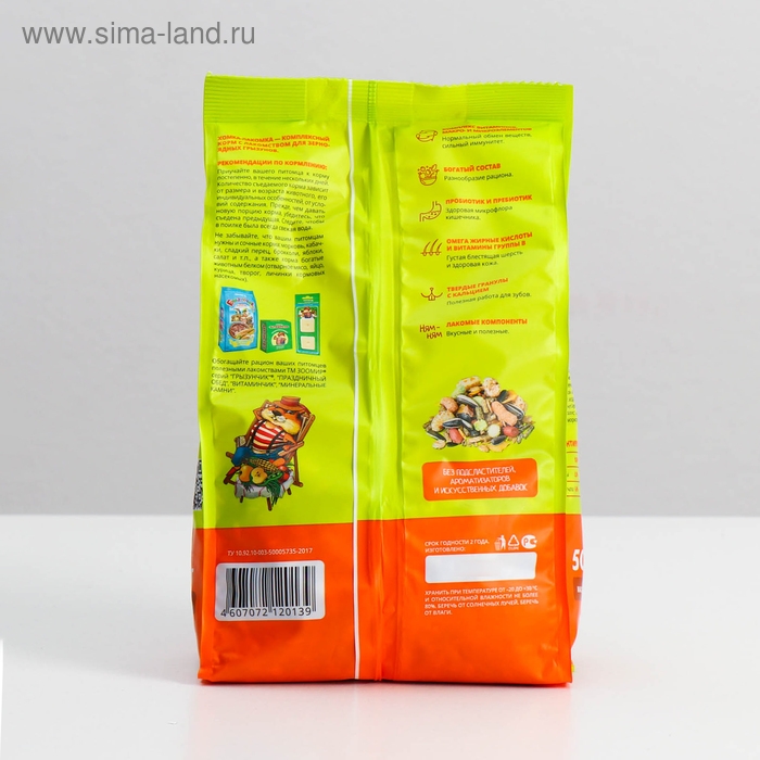 Комплексный корм с лакомством для зерноядных грызунов.