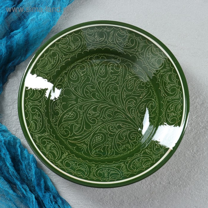 Тарелка Риштанская Керамика "Узоры", зелёная, глубокая, 20 см